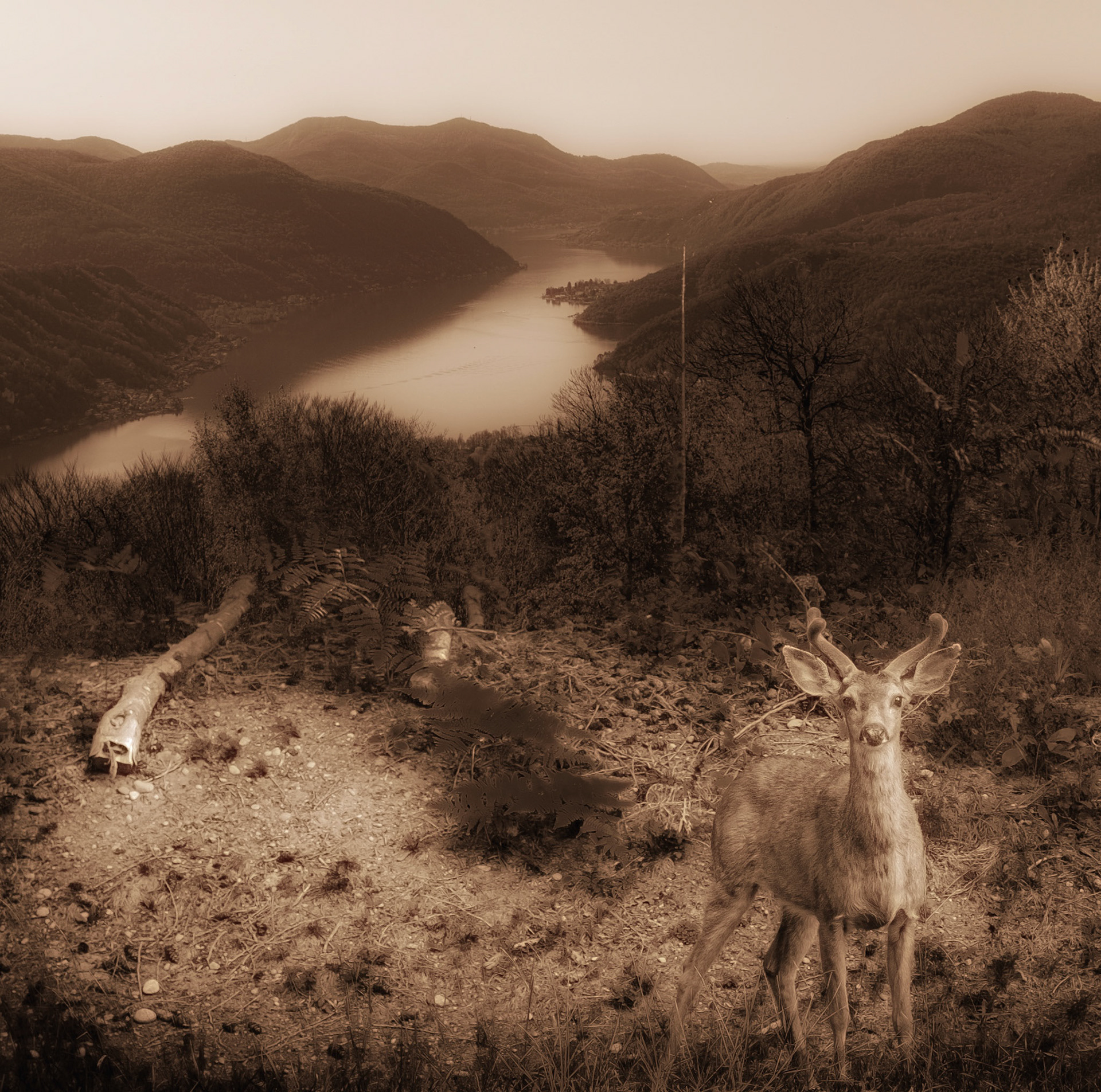 Deer on the Hill Among the Great Cedars