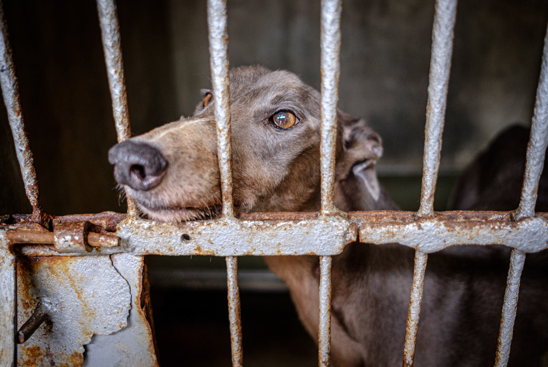 For many shifts during my 14 days there last November, I was the only volunteer and felt completely alone and distraught. I burst into tears so many times witnessing what these gentle souls had to endure. Dark, wet, concrete cells with decrepit rusty, sharp bars. Greyhounds lying on the cement floor with open wounds from lack of soft bedding and some without any bed at all. Greyhounds very underweight, with rotting teeth, some with mouths full of blood. Their only stimulation other than 2 meals and 2 short walks a day was chewing on their metal bars or scratching on the wall. Greyhounds with scars, ragged coats and red raw feet as their cells and the pavement for their walks were never dry. There were many old ones, who had somehow survived this living hell. And the adorable young ones still full of life who were born in their cells. Greyhounds being rough handled, hit on their walks and dragged along while trying to pee. And I will never forget the moment when one worker got mad with me because he thought I was too gentle with the dogs as I took them out of their cells. He corrected me by demonstrating how to forcefully grab one, as if she were some sort of wild beast. As he walked away I couldn’t see straight through the flood of tears that never seemed to end. How could they treat greyhounds, our beautiful beloved greyhounds, this way?